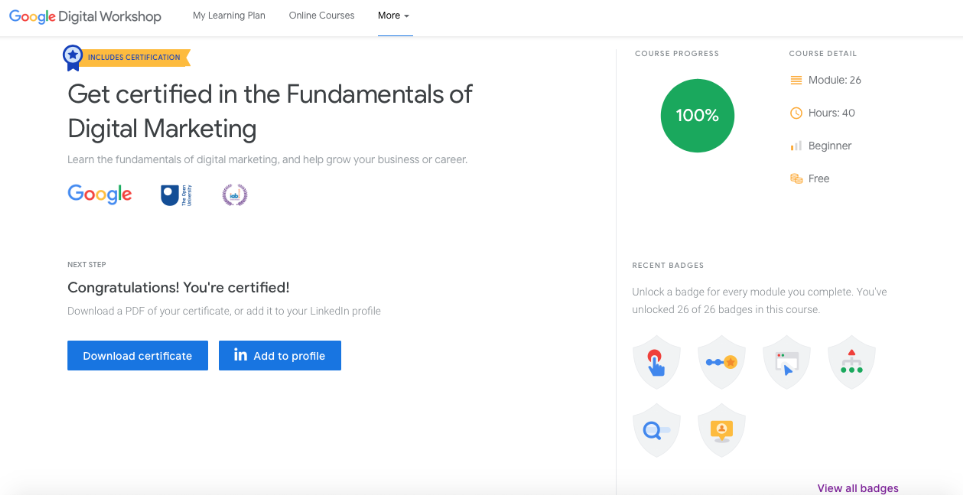 Google Digital Garage✔️ Yes40 hrsBeginnersFree